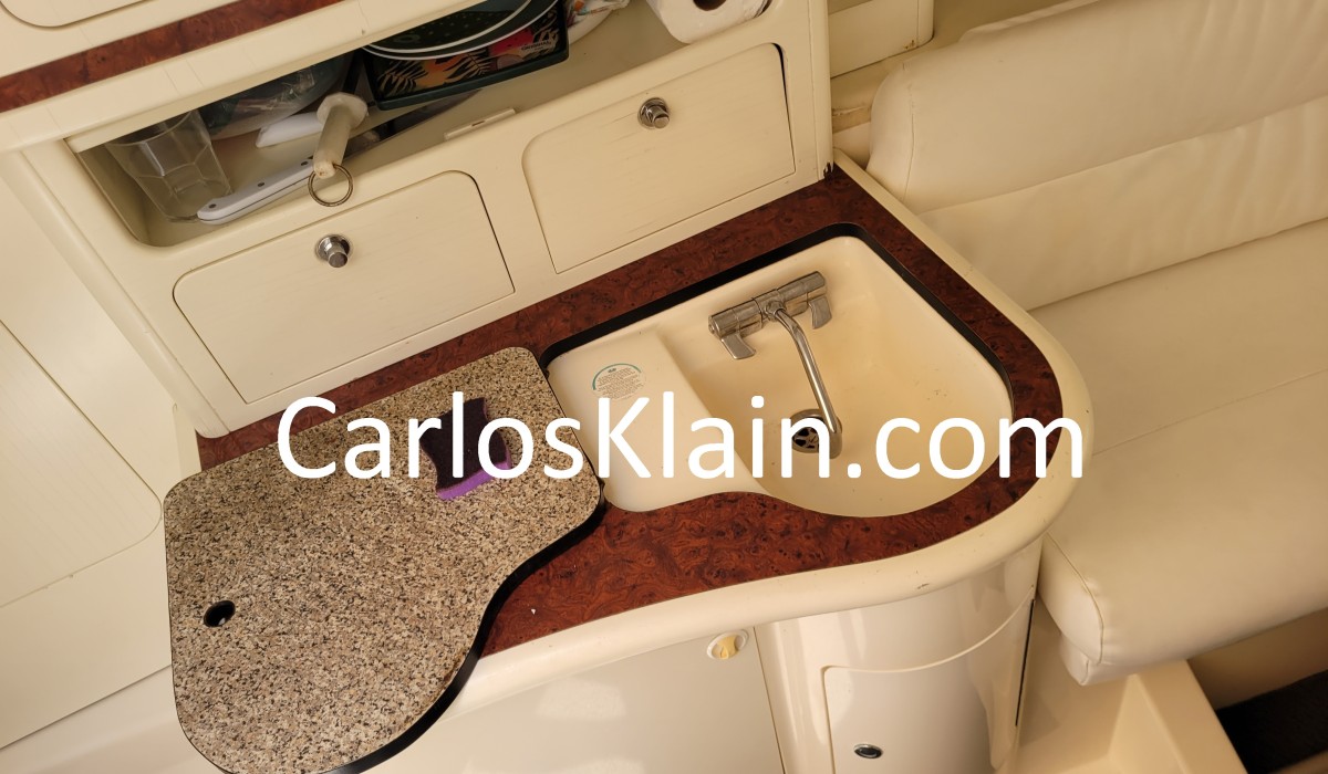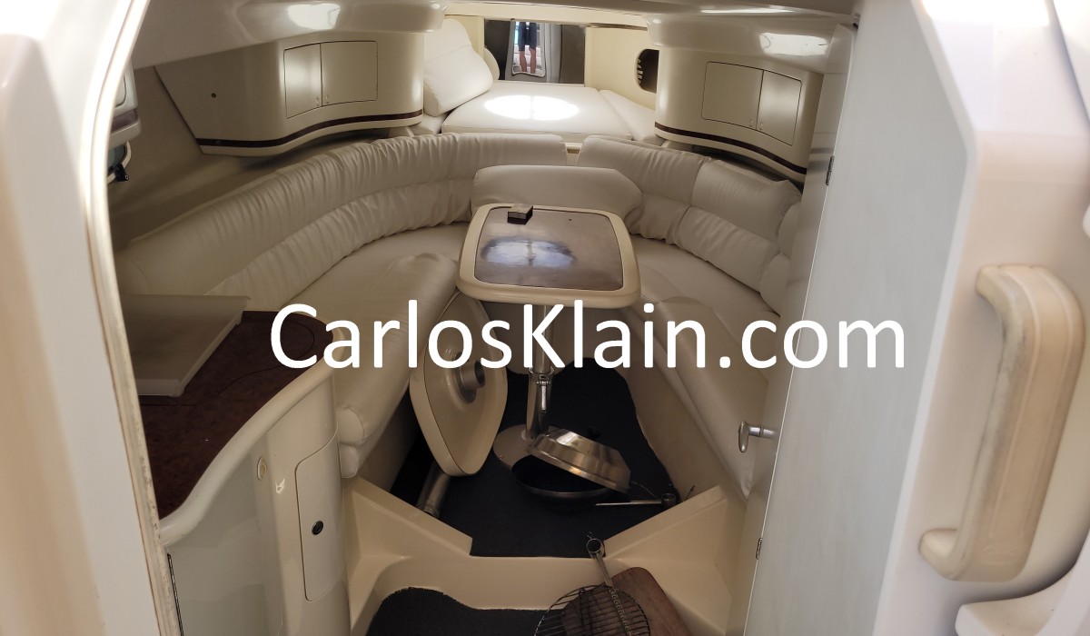 Vigias / Cozinha 1 boca / Mesada com pia / Geladeira 12v. / Mesa com Sofá em U proa (transforma em cama)